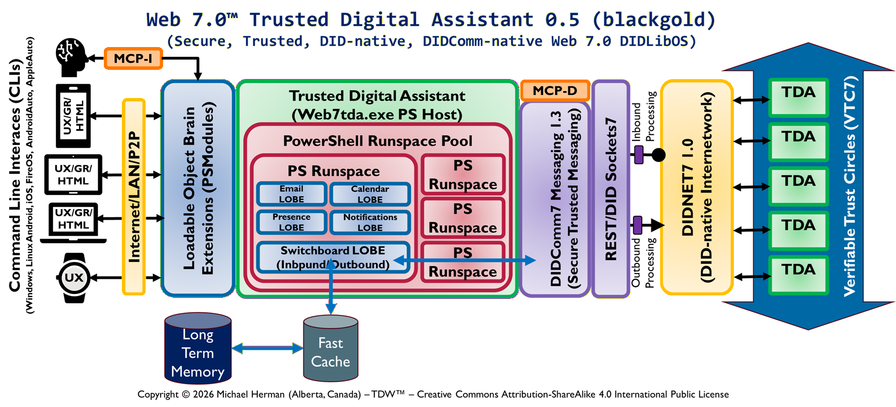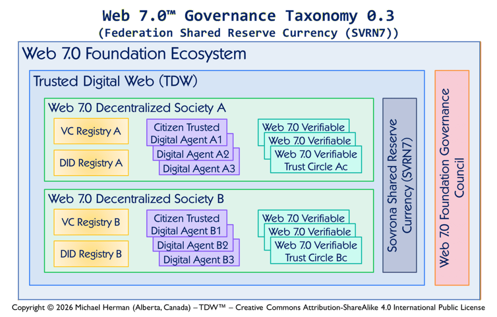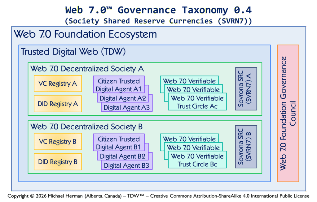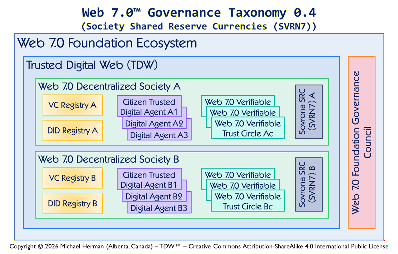 “Web 7.0 is a unified software and hardware ecosystem for building resilient, trusted, decentralized systems using decentralized identifiers, DIDComm agents, and verifiable credentials.” Michael Herman, Trusted Digital Web (TDW) Project, Hyperonomy Digital Identity Lab, Web 7.0 Foundation. January 2023.