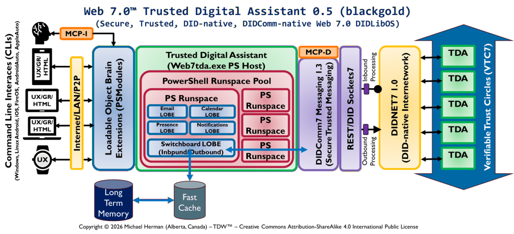 NOTE: “Artificial Intelligence” (or “AI”) does not appear anywhere in the remainder of this article. The northstar of the Web 7.0 project is to be a unified software and hardware ecosystem for building resilient, trusted, decentralized systems using decentralized identifiers, DIDComm agents, and verifiable credentials – regardless of whether the outcome (a Web 7.0 network) uses AI or not. Refer to Figures 4a, 4b, and 6 for a better understanding.