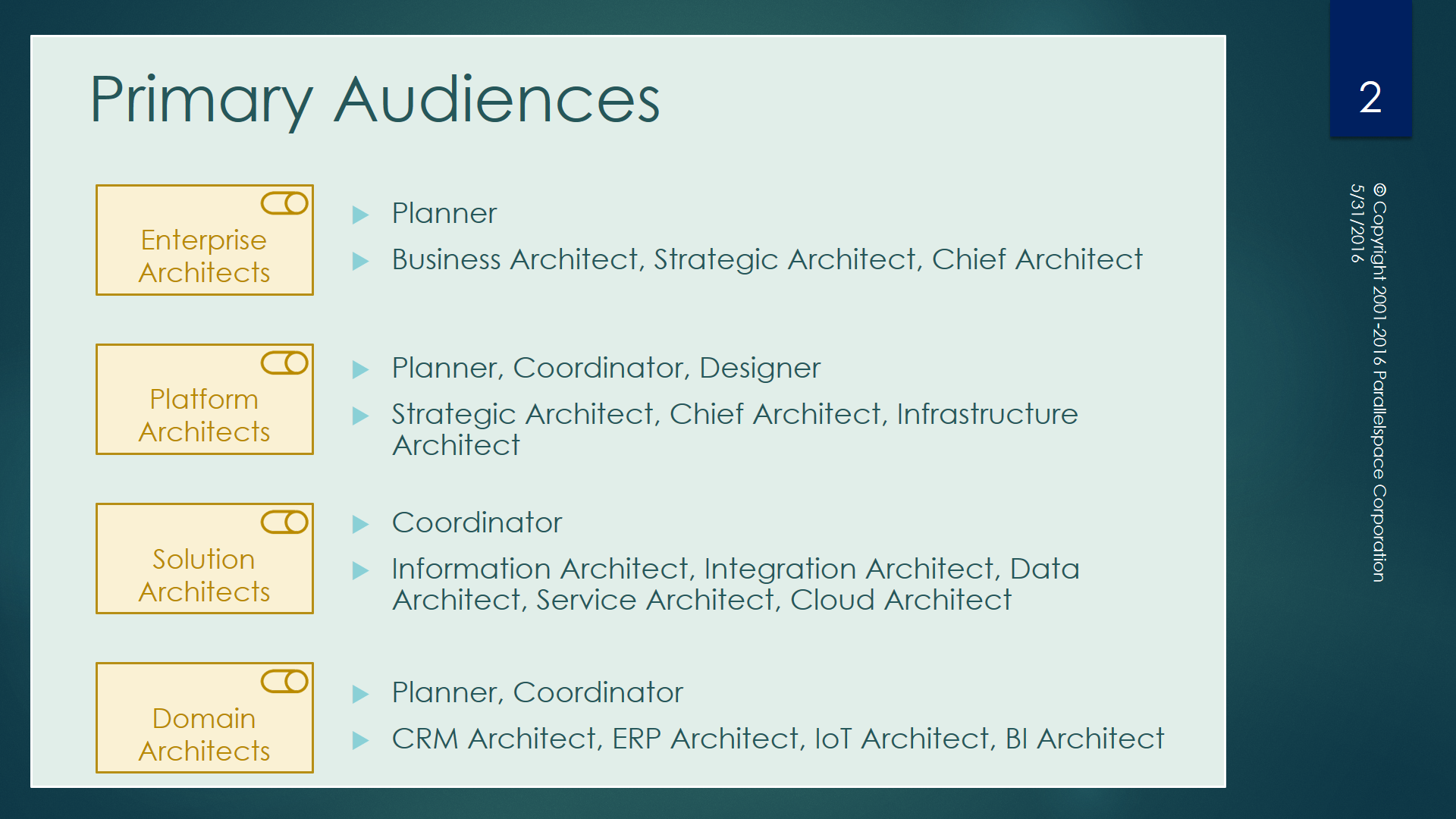 Click here to open or download a copy of an experimental version of my Parallelspace PowerPoint Template for ArchiMate 2.1 version 2.0 (file version 1-0-14) containing experimental conceptual, logical and physical renderings of the ArchiMate Business Architecture, Application Architecture and Physical Architecture concepts.