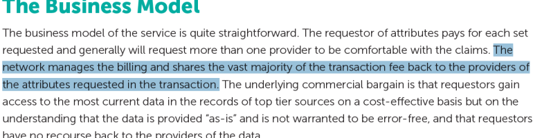 The most concerning part of this partnership between SecureKey, IBM, and the Canadian banks is the partnership’s intent to monetize and profit from the trafficking of digital identities of individual Canadians based on the following and similar excerpts from [4][5]: