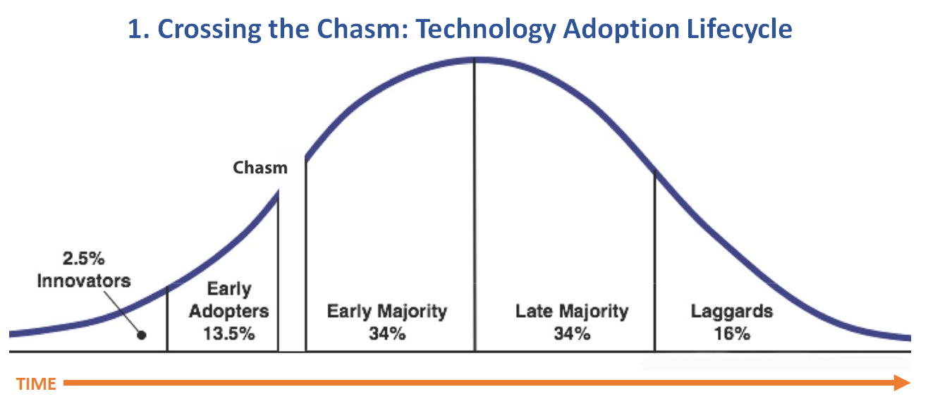 [Model 1] Crossing the Chasm: Marketing and Selling High-Tech Products to Mainstream Customers (https://en.wikipedia.org/wiki/Crossing_the_Chasm)