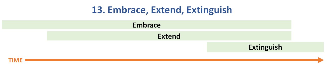 [Model 12] Microsoft Corporation (https://en.wikipedia.org/wiki/Embrace,_extend,_and_extinguish)