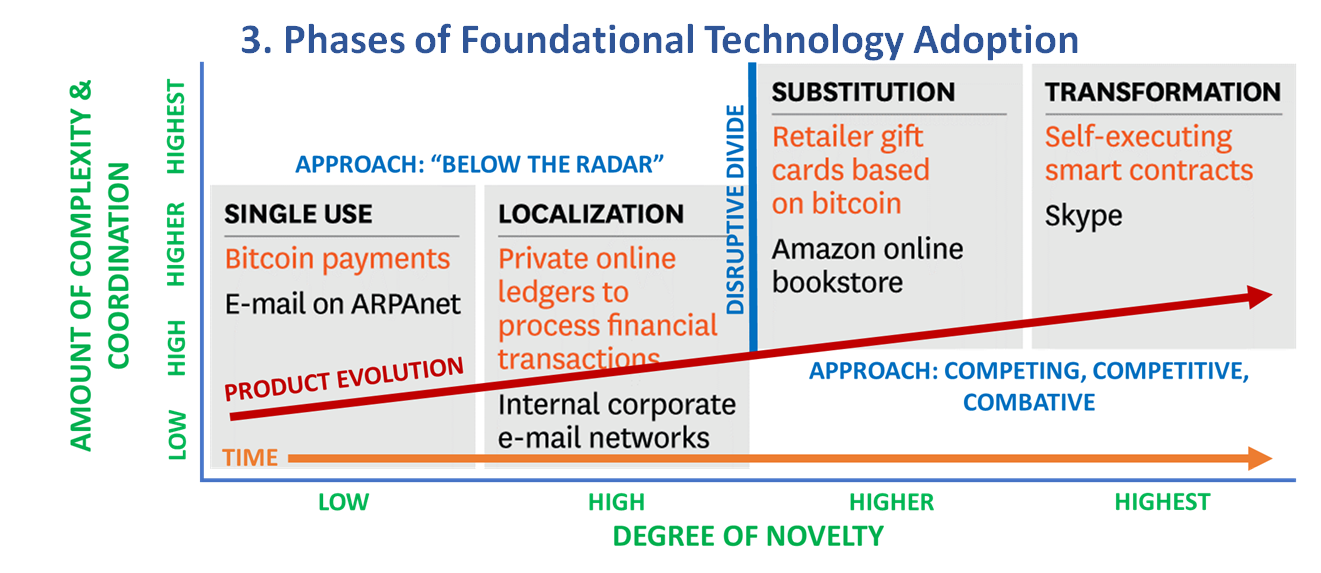 [Model 3] Phases of Foundational Technology Adoption (https://www.linkedin.com/pulse/blockchain-foundational-technology-michael-herman/)