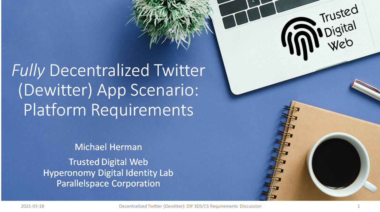 Best regards, Michael Herman Far Left Self-Sovereignist Self-Sovereign Blockchain Architect Trusted Digital Web Hyperonomy Digital Identity Lab Parallelspace Corporation