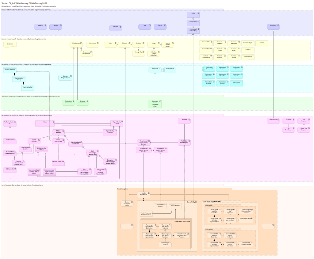 From: Michael Herman (Trusted Digital Web) <mwherman@parallelspace.net> Sent: March 24, 2021 8:47 AM To: Leonard Rosenthol <lrosenth@adobe.com>; David Waite <dwaite@pingidentity.com>; Jim St.Clair <jim.stclair@lumedic.io> Cc: Drummond Reed <drummond.reed@evernym.com>; sankarshan <sankarshan@dhiway.com>; W3C Credentials CG (Public List) <public-credentials@w3.org>; Hardman, Daniel <Daniel.Hardman@sicpa.com> Subject: TDW Glossary [was: The “self-sovereign” problem (was: The SSI protocols challenge)]