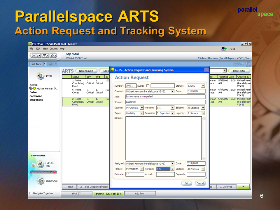 Parallelspace Corporation, the leading developer of Truly Collaborative Business Solutions for Groove Workspace.