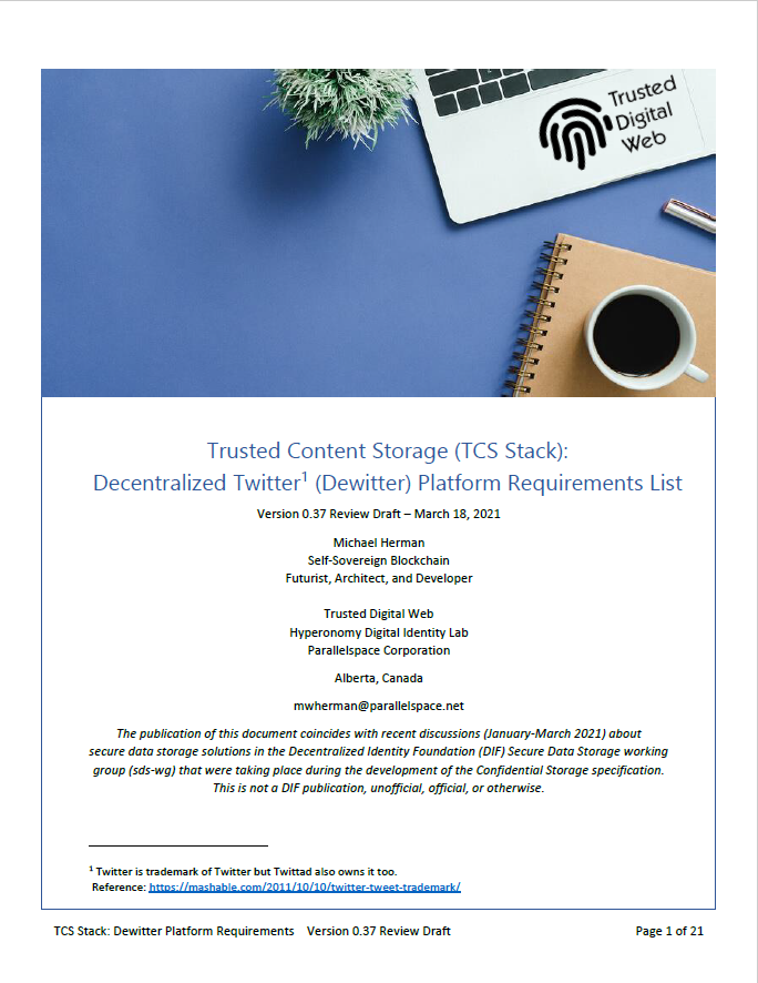 The above proposal for describing a Hub using the TDW Hub Architecture Reference Model (HUB-ARM) was inspired by Daniel Buchner’s verbal description of a Hub during the DIF SDS/CS call on Thursday, March 11, 2021 plus subsequent conversations on the DIF SDS/CS mailing list (Adrian Gropper).