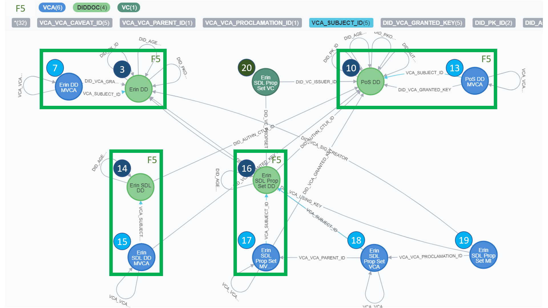 - Subgraph F5 – DID Documents (DDs) and Master Verifiable Capability Authorizations (MVCAs) Neighborhood
