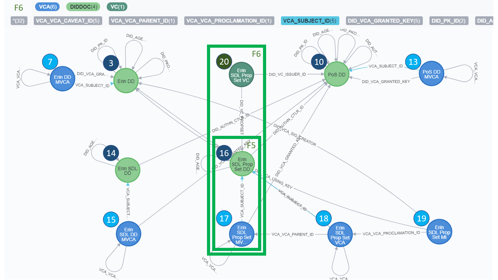 - Subgraph F6 – Erin’s Sovronia Drivers License (SDL) Property Set Verifiable Credential (VC) Neighborhood