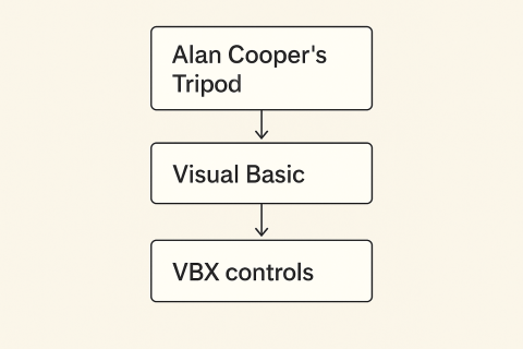 Cooper’s prototype introduced the form designer concept — dragging and dropping UI elements (controls) onto forms — which directly led to the need for VBX controls as reusable, pluggable components.