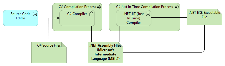 csharp-compilation-model1Figure 2. C# Compilation Model: Role of the Microsoft Intermediate Language (MSIL)