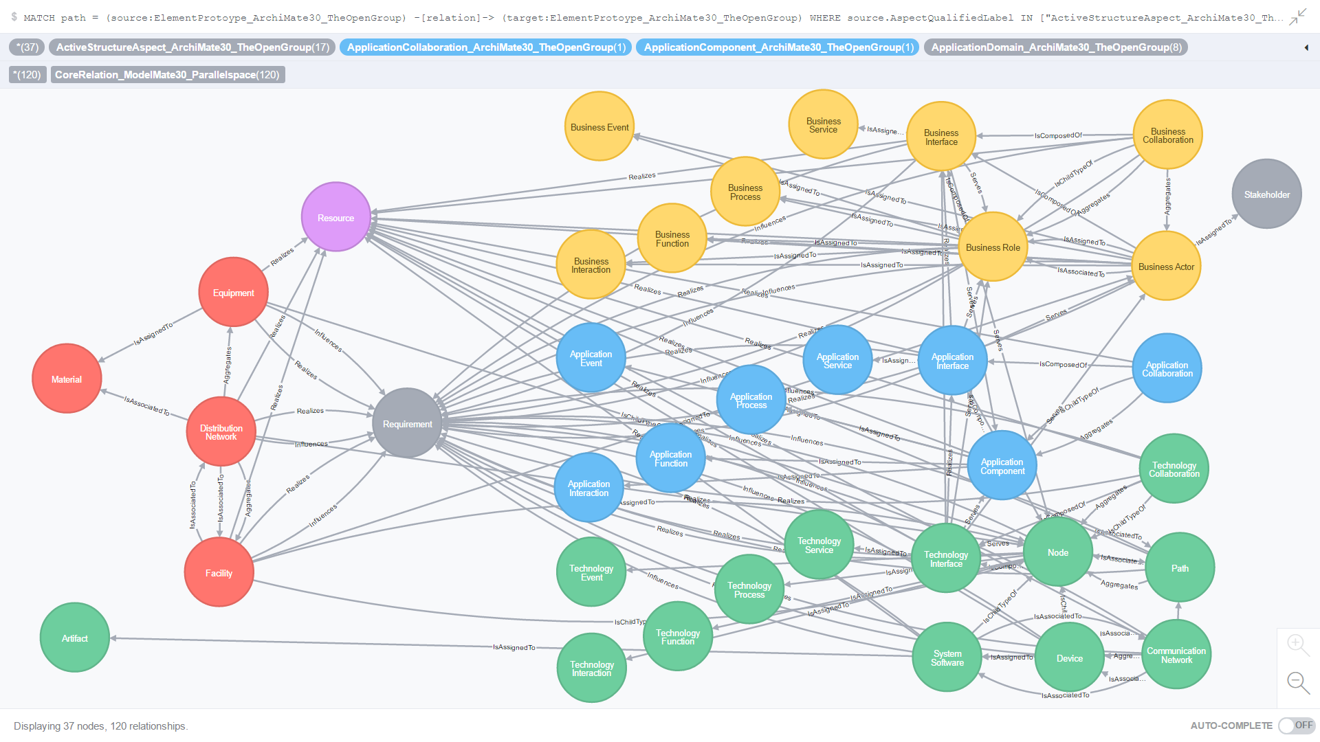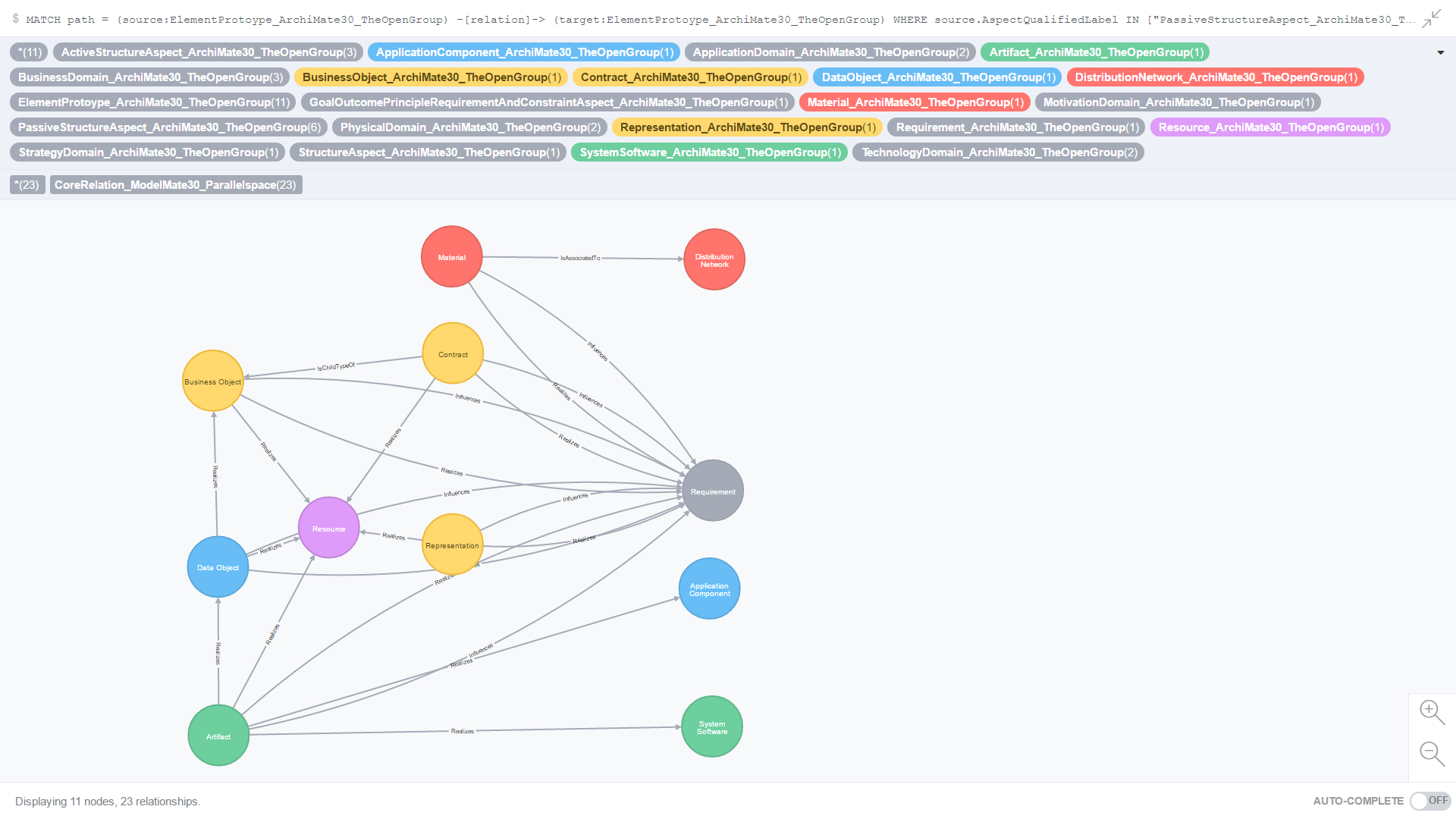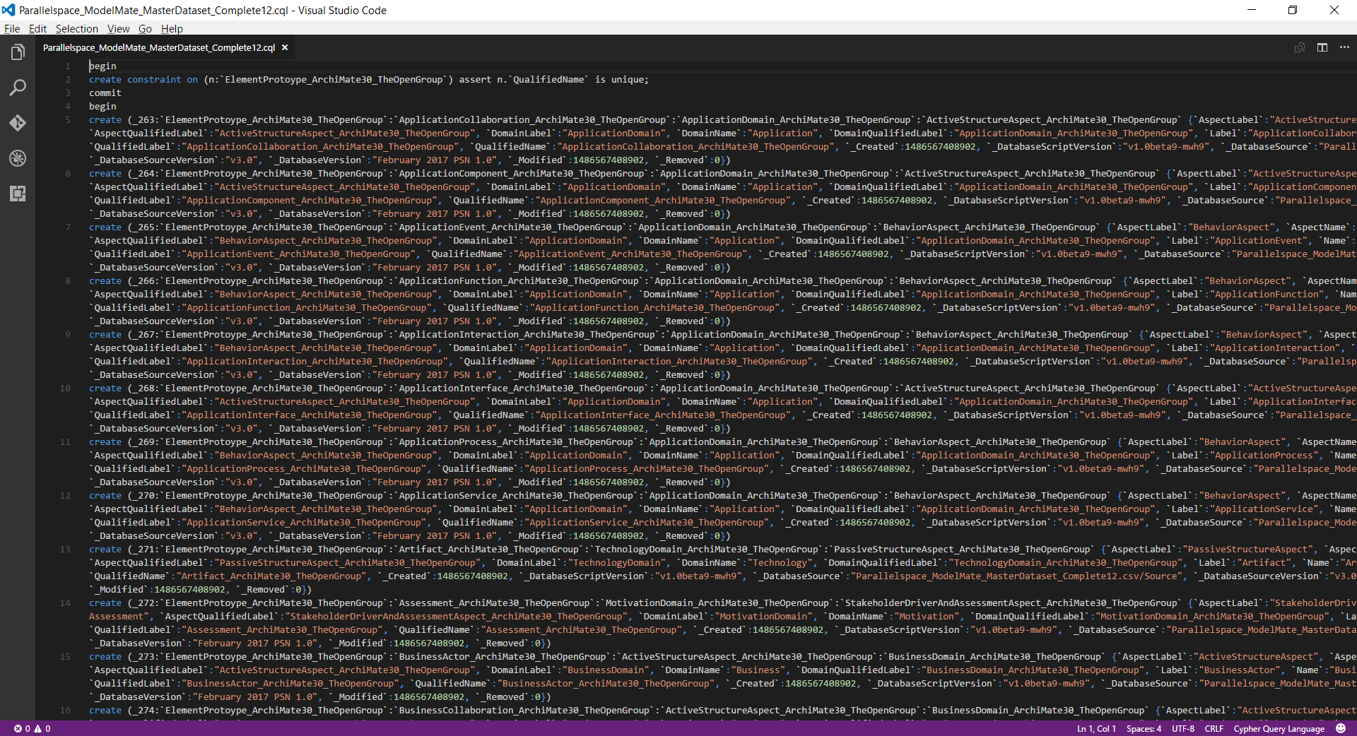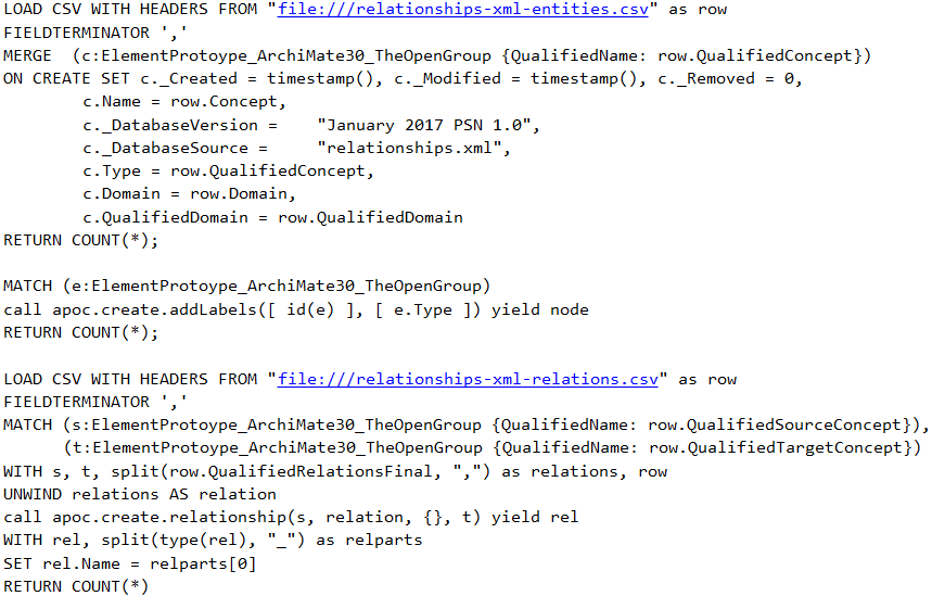 10Step 10 uses a series of Cypher Query Language (CQL) script files to create and populate a Neo4j graph database – to enable simple but powerful ad-hoc queries against the ArchiMate 3.0 relationship tables/metamodel.